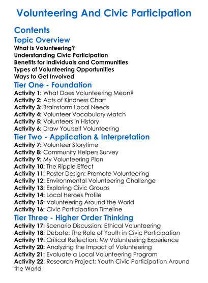 Volunteering And Civic Participation Worksheet Activity Booklet