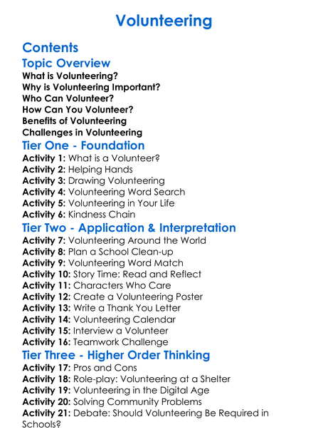 Volunteering Worksheet Activity Booklet