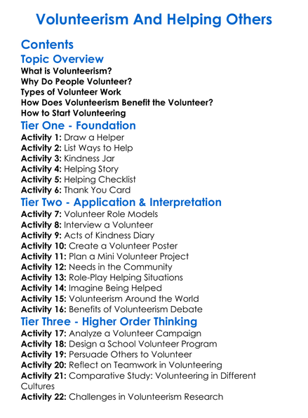Volunteerism And Helping Others Worksheet Activity Booklet