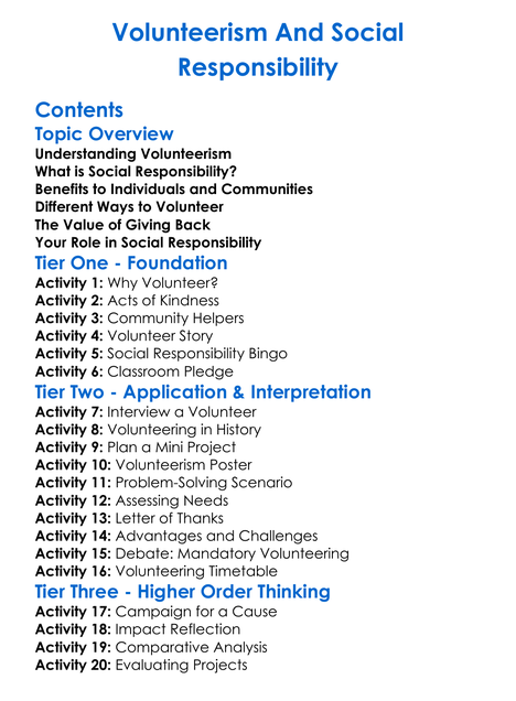 Volunteerism And Social Responsibility Worksheet Activity Booklet