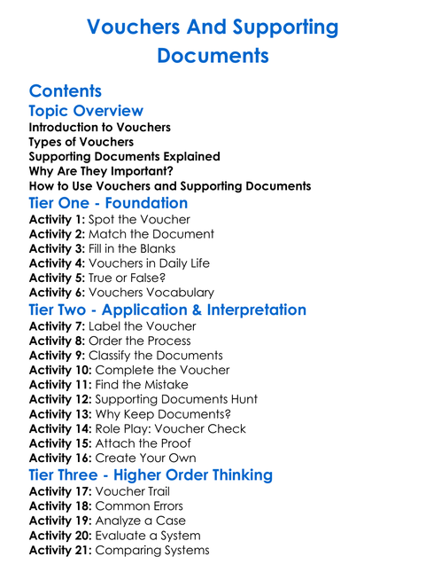 Vouchers And Supporting Documents Worksheet Activity Booklet