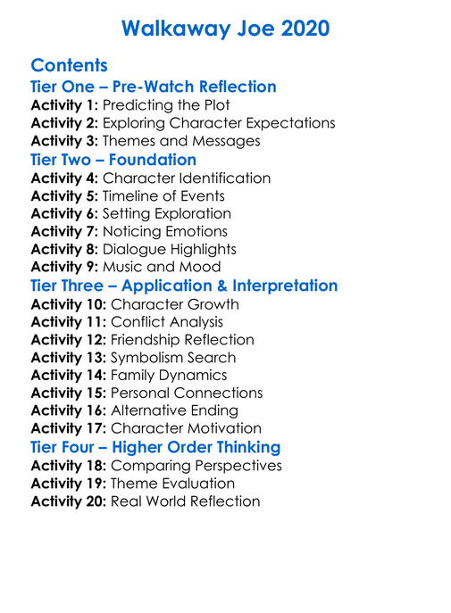Walkaway Joe 2020 Worksheet Activity Booklet