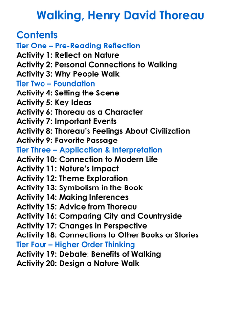 Walking Henry David Thoreau Worksheet Activity Booklet
