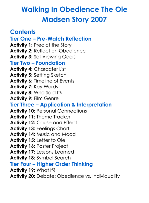 Walking In Obedience The Ole Madsen Story 2007 Worksheet Activity Booklet