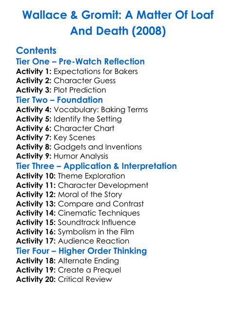Wallace Gromit A Matter Of Loaf And Death 2008 Worksheet Activity Booklet