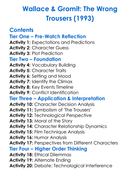 Wallace Gromit The Wrong Trousers 1993 Worksheet Activity Booklet