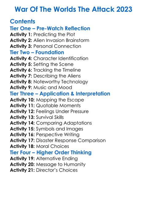 War Of The Worlds The Attack 2023 Worksheet Activity Booklet
