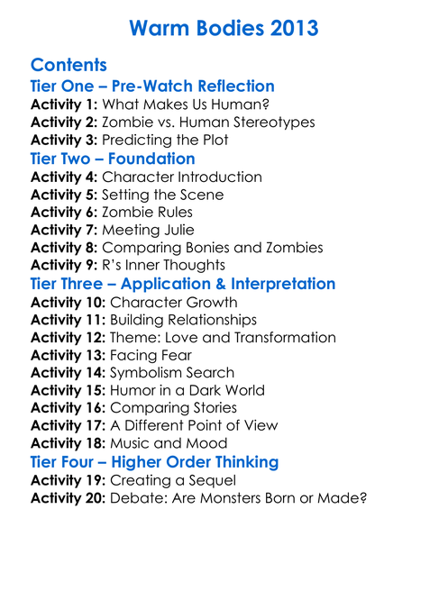 Warm Bodies 2013 Worksheet Activity Booklet