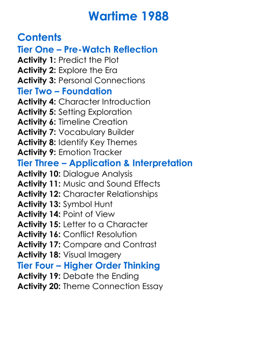 Wartime 1988 Worksheet Activity Booklet