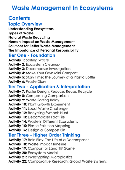 Waste Management In Ecosystems Worksheet Activity Booklet