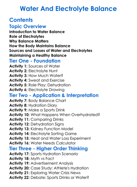 Water And Electrolyte Balance Worksheet Activity Booklet