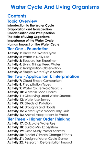 Water Cycle And Living Organisms Worksheet Activity Booklet