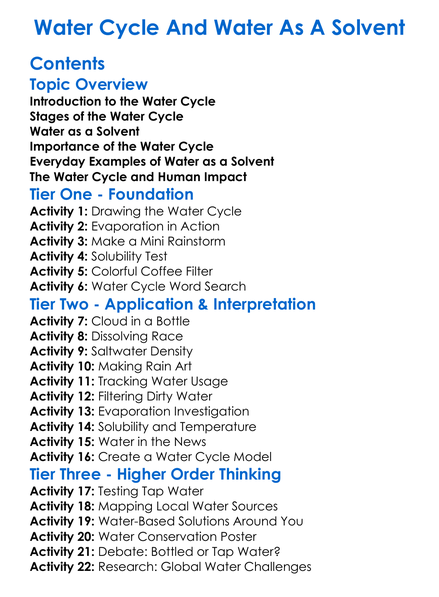 Water Cycle And Water As A Solvent Worksheet Activity Booklet