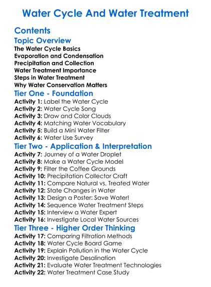 Water Cycle And Water Treatment Worksheet Activity Booklet