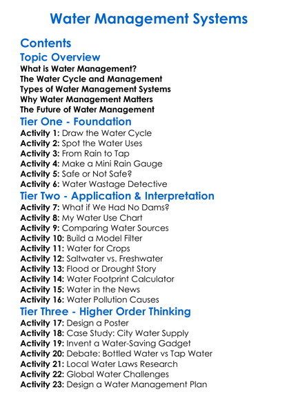 Water Management Systems Worksheet Activity Booklet