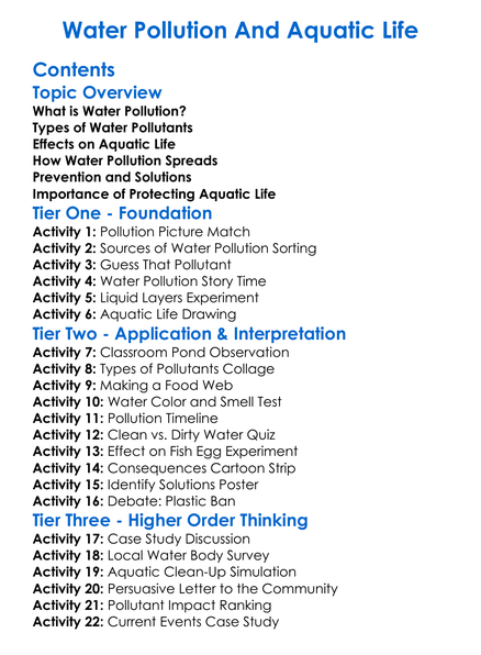 Water Pollution And Aquatic Life Worksheet Activity Booklet