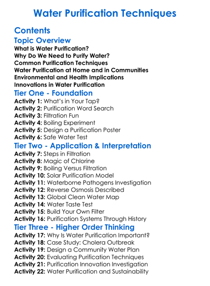 Water Purification Techniques Worksheet Activity Booklet