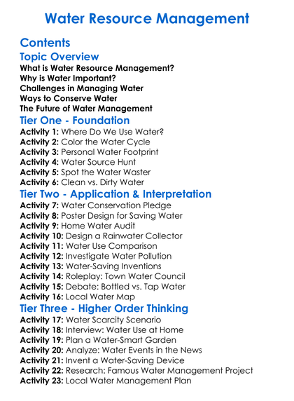 Water Resource Management Worksheet Activity Booklet