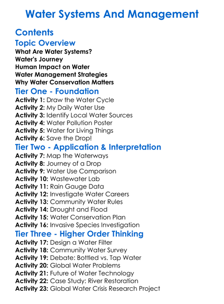 Water Systems And Management Worksheet Activity Booklet