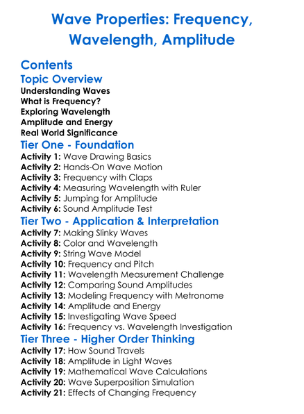 Wave Properties Frequency Wavelength Amplitude Worksheet Activity Booklet