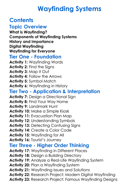 Wayfinding Systems Worksheet Activity Booklet