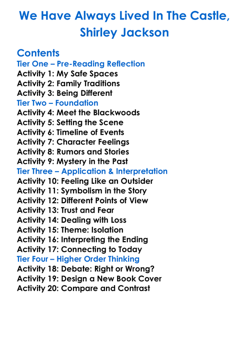 We Have Always Lived In The Castle Shirley Jackson Worksheet Activity Booklet