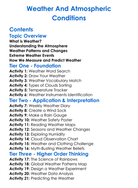 Weather And Atmospheric Conditions Worksheet Activity Booklet