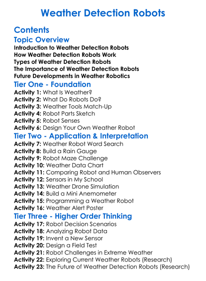 Weather Detection Robots Worksheet Activity Booklet