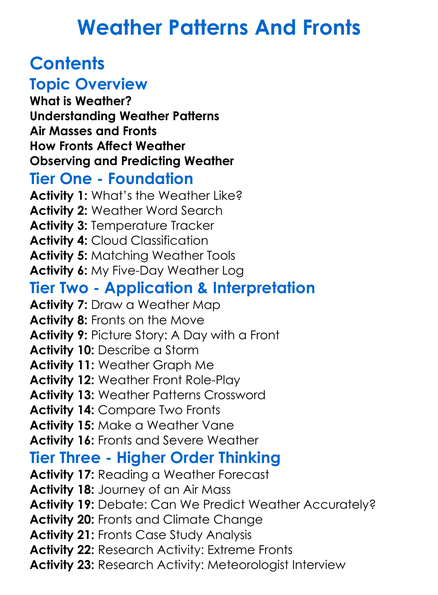 Weather Patterns And Fronts Worksheet Activity Booklet