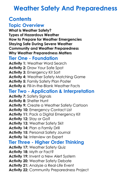 Weather Safety And Preparedness Worksheet Activity Booklet