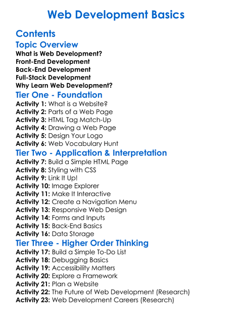 Web Development Basics Worksheet Activity Booklet