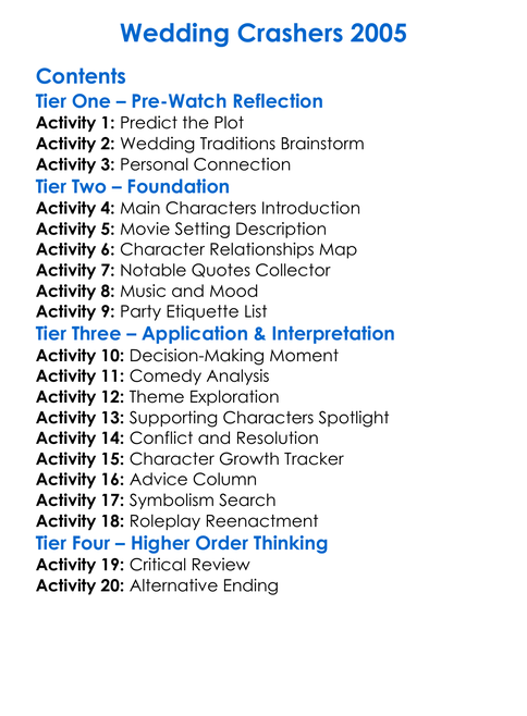 Wedding Crashers 2005 Worksheet Activity Booklet