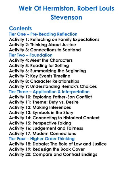Weir Of Hermiston Robert Louis Stevenson Worksheet Activity Booklet