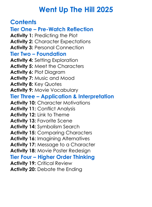 Went Up The Hill 2025 Worksheet Activity Booklet