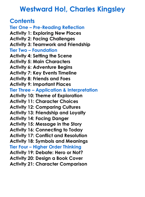 Westward Ho Charles Kingsley Worksheet Activity Booklet
