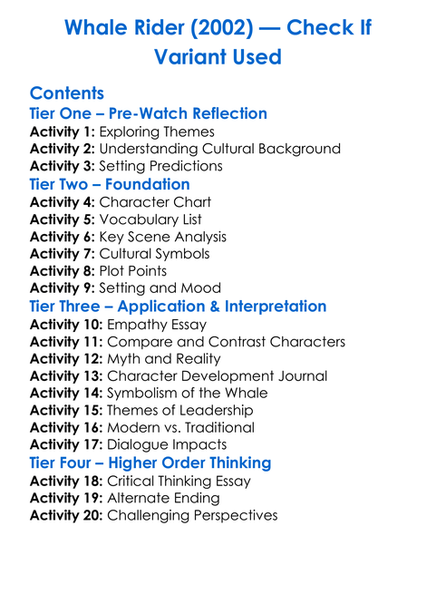 Whale Rider 2002 Check If Variant Used Worksheet Activity Booklet