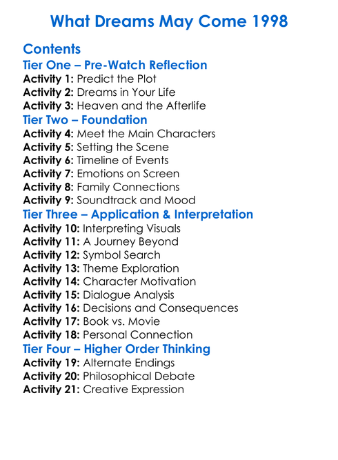 What Dreams May Come 1998 Worksheet Activity Booklet