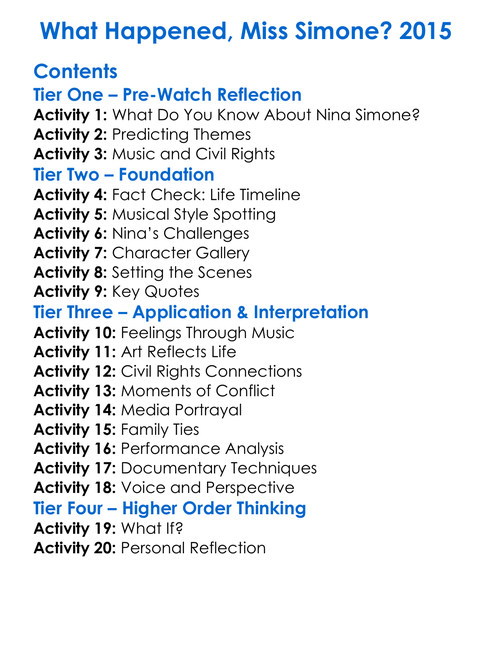 What Happened Miss Simone 2015 Worksheet Activity Booklet
