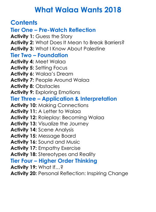 What Walaa Wants 2018 Worksheet Activity Booklet