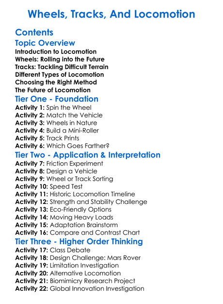 Wheels Tracks And Locomotion Worksheet Activity Booklet