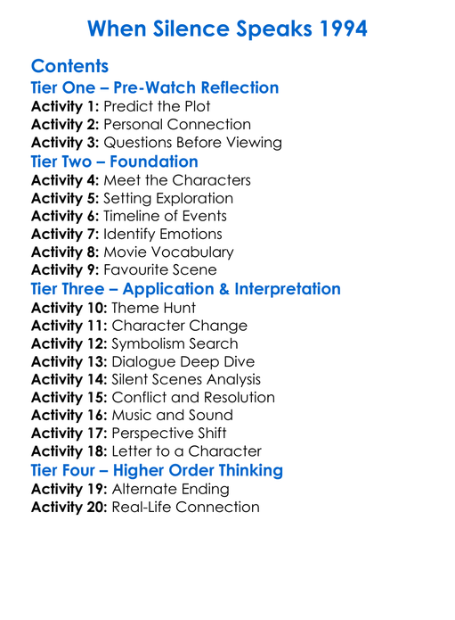 When Silence Speaks 1994 Worksheet Activity Booklet