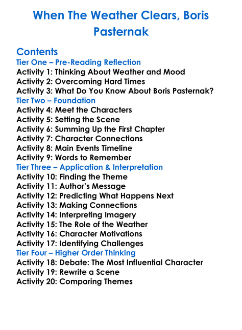 When The Weather Clears Boris Pasternak Worksheet Activity Booklet