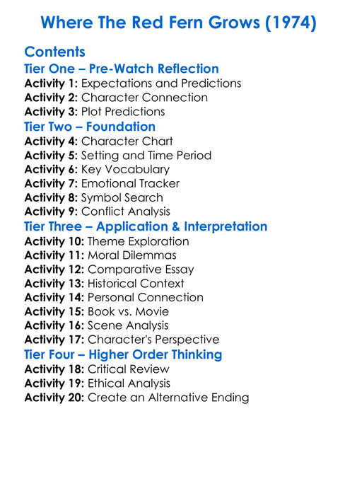 Where The Red Fern Grows 1974 Worksheet Activity Booklet