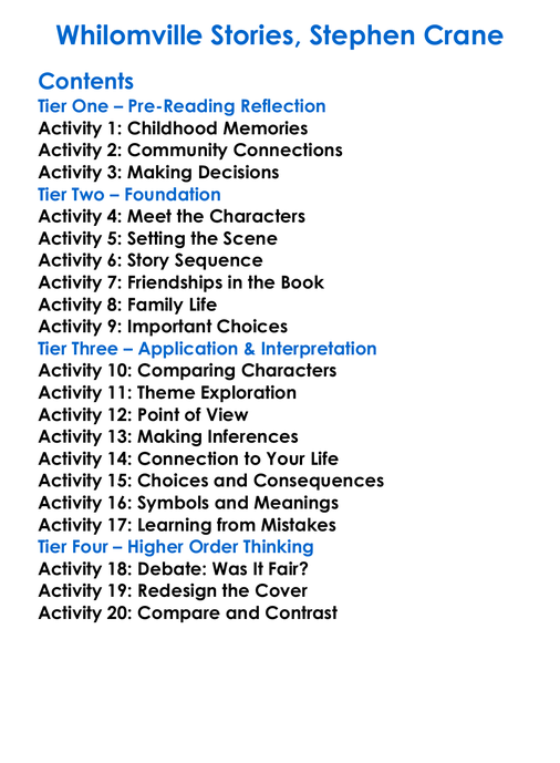 Whilomville Stories Stephen Crane Worksheet Activity Booklet