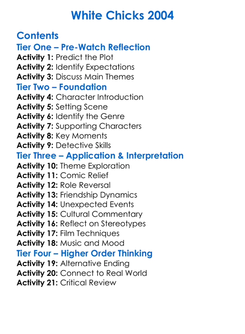 White Chicks 2004 Worksheet Activity Booklet