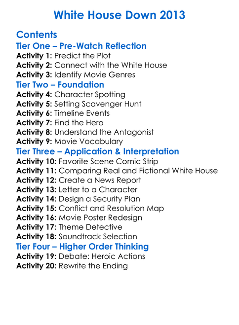 White House Down 2013 Worksheet Activity Booklet
