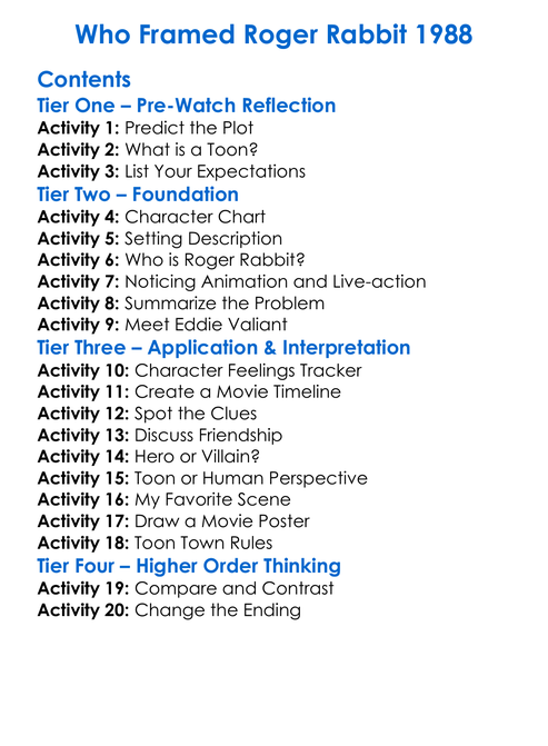Who Framed Roger Rabbit 1988 Worksheet Activity Booklet