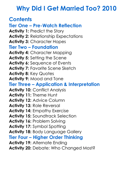 Why Did I Get Married Too 2010 Worksheet Activity Booklet