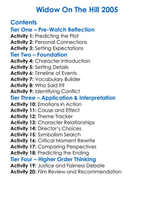 Widow On The Hill 2005 Worksheet Activity Booklet