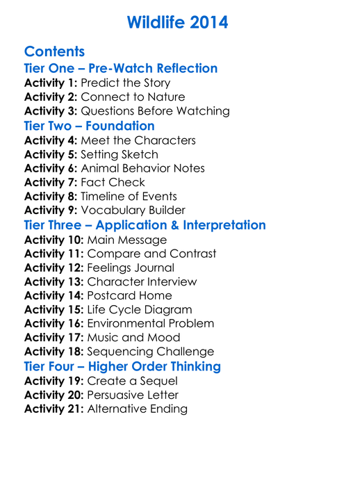 Wildlife 2014 Worksheet Activity Booklet